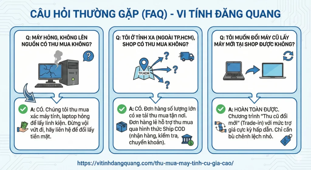 Q: Máy tính của tôi đã hỏng không lên nguồn, Vi Tính Đăng Quang có thu mua không?
